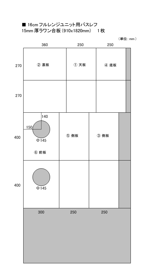 ・16cmフルレンジユニットx2 ・15mm厚ラワン合板(910x1820mm)x1枚 ・スピーカーコード2m〜 ・吸音材